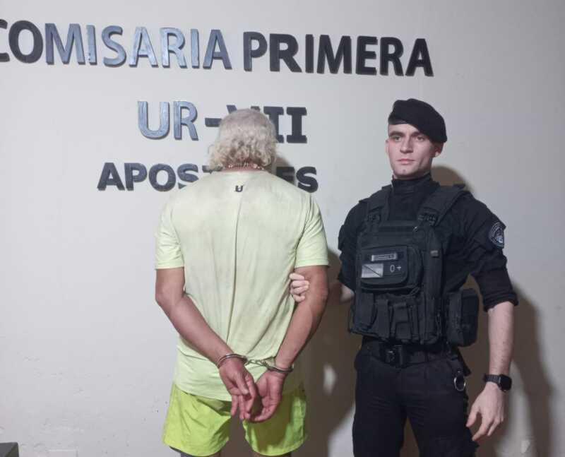 En pocos minutos, una comisión policial arribó al lugar y procedió a la detención del agresor, de 65 años, quien al ser sometido al test de alcoholemia arrojó 2,26 g/L de alcohol en sangre. El individuo fue trasladado a sede policial, donde quedó alojado a disposición del Juzgado de Instrucción N.º 4 de Apóstoles por el delito de lesiones y violencia contra la mujer.