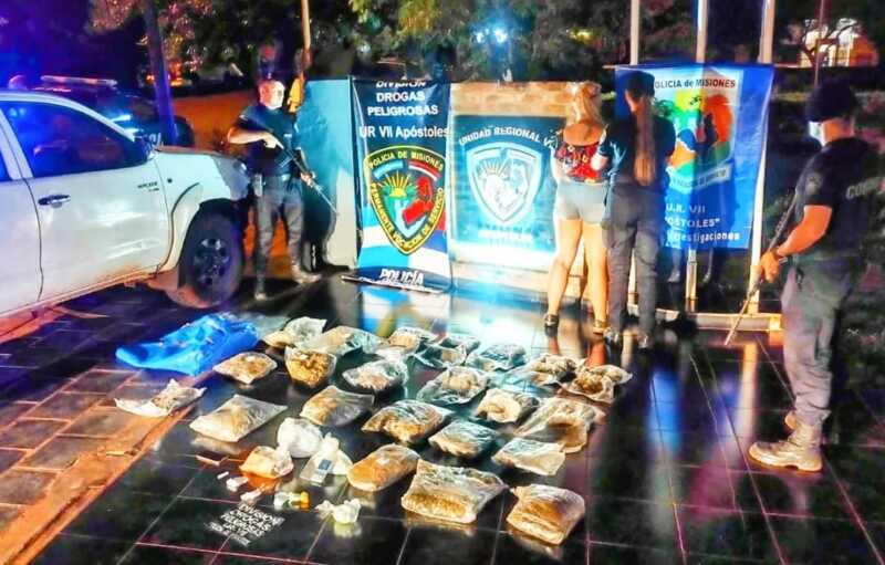 Esta madrugada en la localidad de Apóstoles los efectivos de la División Investigaciones juntamente con Drogas Peligrosas arrestaron a Ayelen de 30 años y le secuestraron un bolso repleto de marihuana, como así también cocaína fraccionada, un teléfono celular, una balanza de precisión, dinero en efectivo y una camioneta Toyota Hilux en la cual se trasladaba.