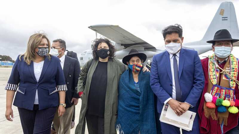 La ministra planteó que, con la donación a Bolivia del millón de dosis de AstraZeneca, «quedó atrás» el tiempo en que la Argentina utilizaba el avión Hércules C-130 de la Fuerza Aérea para «dividir a los pueblos», en referencia al contrabando de material represivo que se envió a La Paz durante la gestión de Mauricio Macri para colaborar con la represión de los manifestantes del Movimiento al Socialismo (MAS) que se oponían al golpe contra Evo Morales.