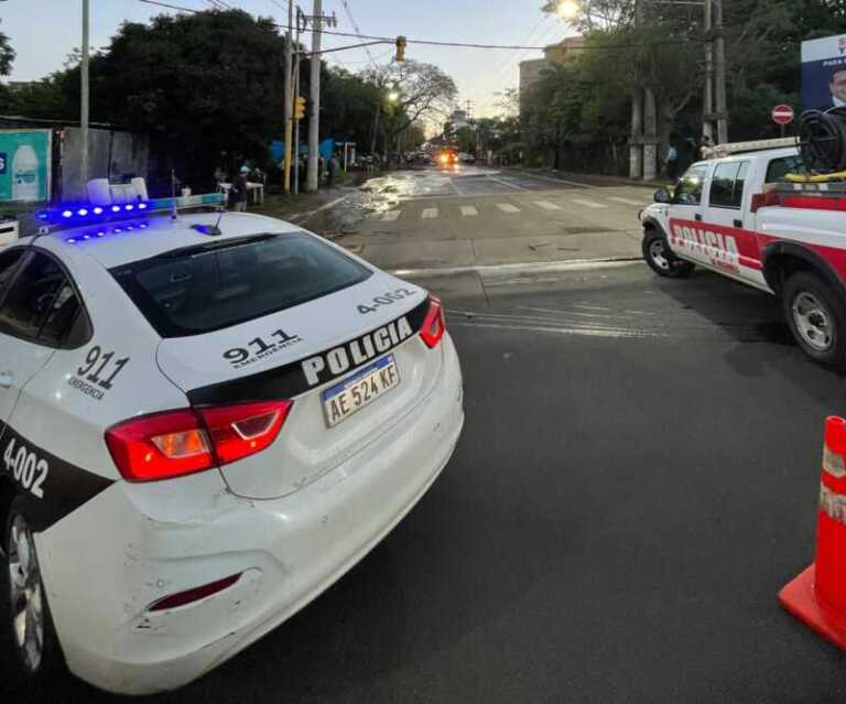 Policías asistieron a vecinos por hundimiento de asfalto en una vivienda de Posadas