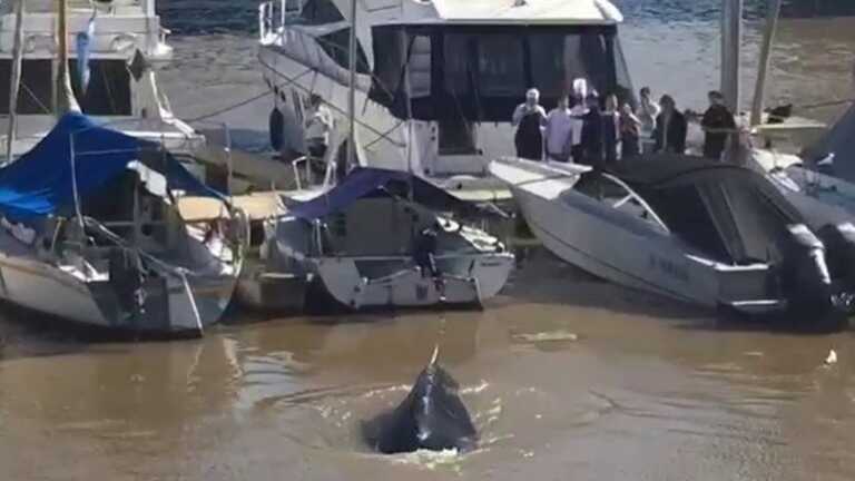 La ballena que apareció en Puerto Madero es guiada hacia aguas abiertas