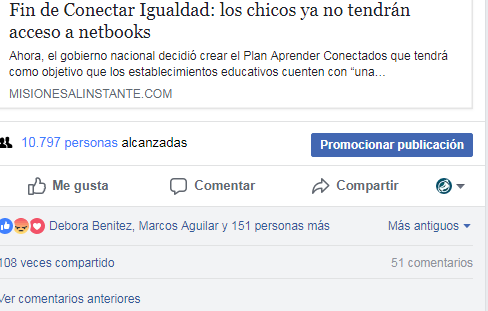 Misiones al Instante compartió la noticia en la red social Facebook, en la cual consiguió 153 reacciones y fue 108 veces compartida. Cientos de personas se mostraron a favor y en contra, generando un extenso y enriquecido debate.