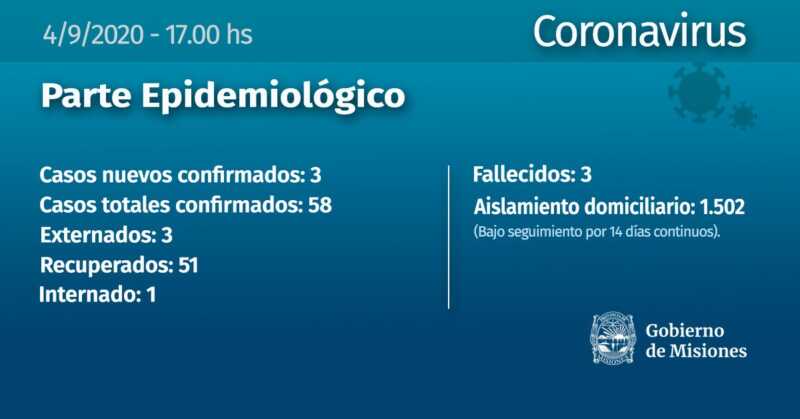 El número de aislamientos domiciliarios ha crecido y llegó al número de 1.502. De los 58 casos confirmados, 51 personas se recuperaron y tres personas fallecieron.
