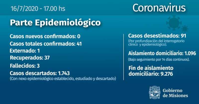 Covid-19 en Misiones: otra jornada sin nuevos casos confirmados y se testearon a 14 personas en 24 horas