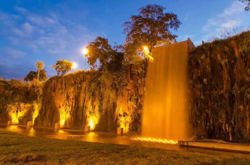 El proyecto fue llevado a cabo por la Entidad Binacional Yacyretá, y posee un caudal de 400 litros por segundo; es impulsada por bombas eléctricas y tendrá horarios de funcionamiento en forma automática. De noche será iluminado por 32 reflectores colocados en la base.