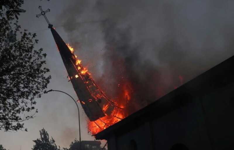 Dos iglesias quemadas y varios saqueos tras multitudinaria marcha en Chile