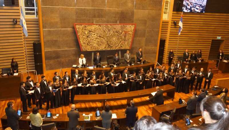 La sesión comenzó con el Himno Nacional Argentino, entonado por el Coro Estable del Centro del Conocimiento, en conmemoración del Bicentenario de la Independencia, que se celebra el próximo 9 de julio.
