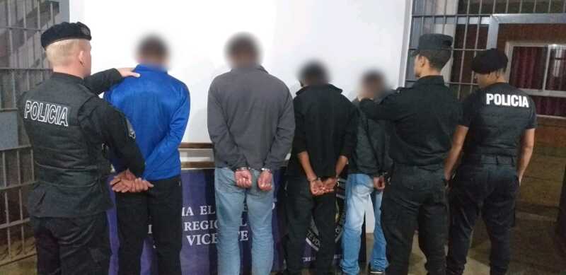 Así con orden del Juzgado de Instrucción N° 3 de San Vicente, se procedió a ingresar al predio donde se detuvo a Jorge S. de 39 años, Cesar D.S. de 26, Damián V. de 20 y Cristian S. de 20. Además dos armas de fuego fueron incautadas, junto a 1 cuero de animal vacuno que fue reconocido por el denunciante como de uno de los animales que le fuera sustraído.