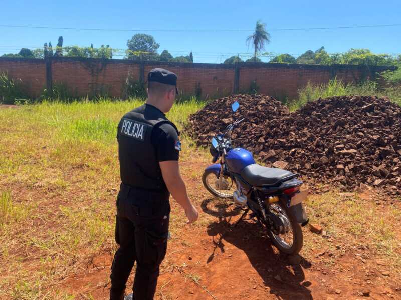 Por otro lado en la localidad de Puerto Rico, los efectivos de la Comisaría Seccional 2da, ubicaron y secuestraron en descampado en cercanías al cementerio, un motocicleta Motomel 150cc, la cual minutos antes habia sido robada a una mujer.
