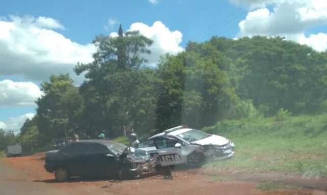 Luego de tomar las calles de barrios del sur posadeños, retomaron la avenida Moreau de Justo (Ruta 213) pero circulando por el carril a contramano poniendo en riesgo a todos los automovilistas que se los encontraban de frente. Esto provocó el segundo accidente: un Chevrolet Corsa con dos ocupantes esquivó a los delincuentes, pero en la maniobra chocó contra un patrullero de la Policía de Misiones.