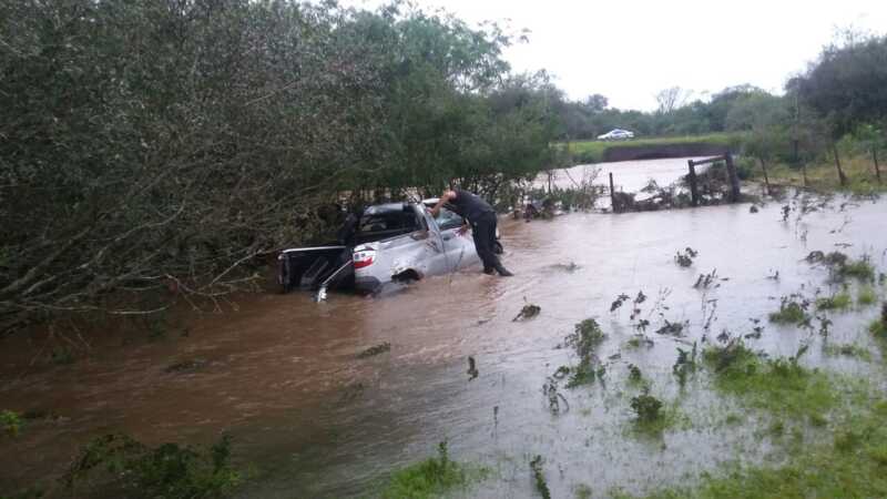 Los efectivos se dirigieron al lugar y constataron que un vehículo Fiat Strada habría despistado terminando en aguas del arroyo. El cuerpo del conductor identificado como Goulartes Claudio Unizony (50), quien fue hallado metros más adelante. Se presume que el fallecido fue arrastrado por el agua a causas de la fuerte correntada producto de la intensa lluvia que cayó sobre la provincia.