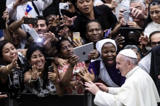 En la Audiencia bajo techo, por las altas temperaturas que se registran en Roma, Francisco dedicó parte de la misma a agradecer a los más de 500.000 jóvenes que participaron de la JMJ en Cracovia.