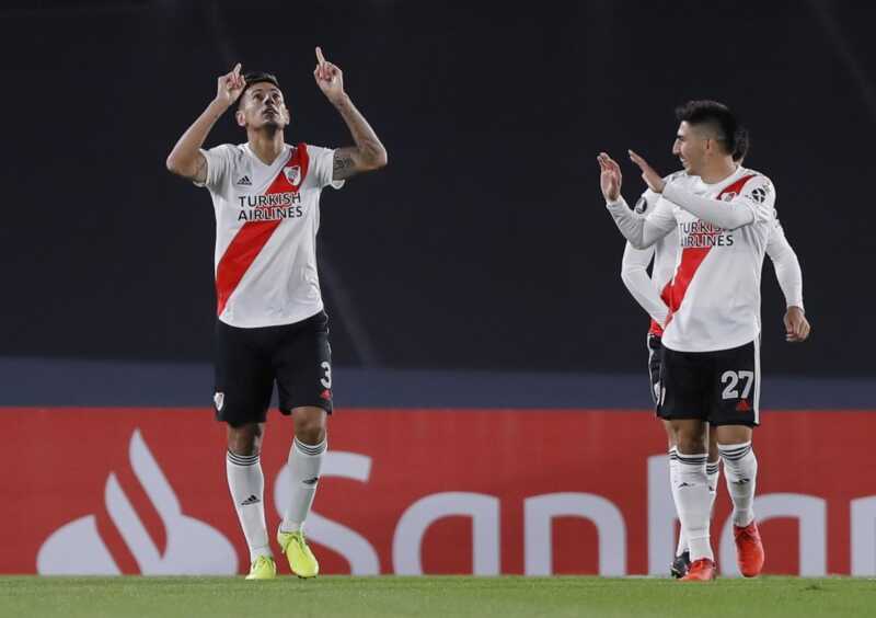 River saltó al campo de juego con solo 11 jugadores, pero ninguno de ellos arquero, debido a la gran cantidad de casos de Covid-19 que tiene el plantel conducido por Marcelo Gallardo, y luego que la Conmebol le rechazó un pedido para poder incorporar dos guardavallas.