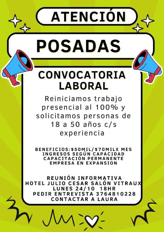 La reunión informativa se llevará a cabo este lunes a las 18 en el salón Vitraux del hotel Julio César. Se puede pedir una entrevista al número 3764810228. Se deben contactar con Laura Nucci.