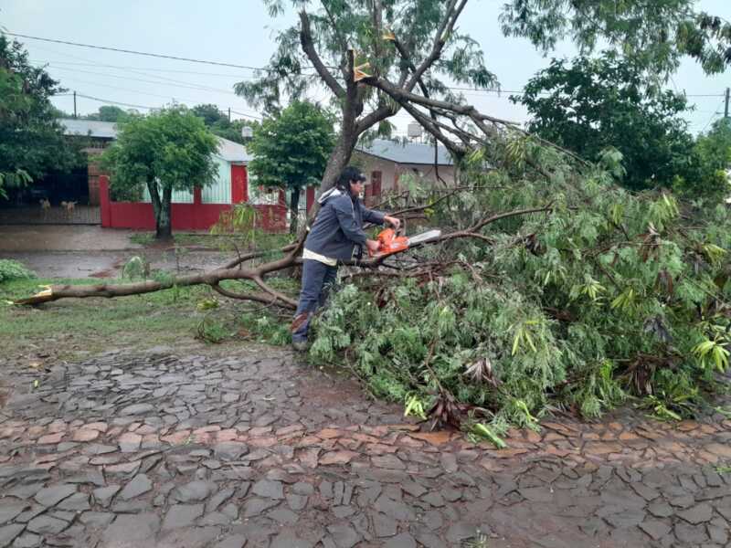La tormenta ocasionó la caída de varios árboles que a su vez provocaron cortes de energía al interrumpir las líneas eléctricas. Las cuadrillas están trabajando en la liberación de los sectores afectados. Para informar sobre árboles caídos, ramas u obstrucciones en la vía pública, se ha habilitado un servicio de WhatsApp del Centro de Atención al Ciudadano. Los vecinos pueden comunicarse al número 3764-439569, proporcionado fotos y la ubicación exacta del incidente, así como sus datos personales.