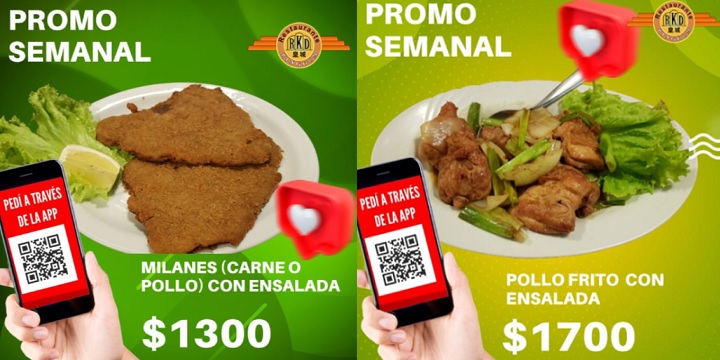 La primera promo consiste en pollo frito con ensalada a 1.700 pesos. La segunda ofrece milanesas de carne o pollo con ensalada a $1.300. Se puede acompañar con las más ricas bebidas orientales y postes de calidad y delicia incomparable.