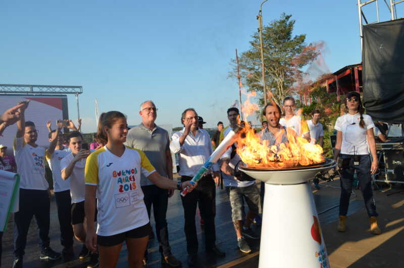 Con mucho orgullo, disfrutando de una oportunidad histórica e inolvidable, y seguidos de cerca por familiares, los relevistas que portaron la llama Olímpica de la juventud fueron Analía Zacarías (Ciclismo BMX Freestyle), Daniel Balladares (profesor de educación física de Puerto Iguazú), Victoria “Charata” Mackinnon (Vela), César Moreira (representante de Comunidades Mbya Guaraní), Agustina Pögler (deportista de Iguazú), Cesar Liberato Menacho Coronado (vecino de Puerto Iguazú), Miriam Alcaraz (deportista de Iguazú), Lucas Miño Machado (estudiante UNaM), Mariela Delgado (Ciclista paralímpico), Cristian Junco (deportista de Iguazú), Agustín Da Silva (Atletismo) y Lucina “Luchi” Von Der Heyde (Hockey sobre césped, Las Leonas), quien recibió, ingresó al anfiteatro y ante las tribunas colmadas de niños, encendió el pebetero.