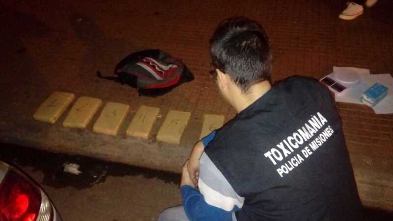 Ya con intervención del Juzgado Federal de Posadas se requisó la mochila en cuyo interior había 6 panes de marihuana cuyo peso arrojó casi 7 kilos.