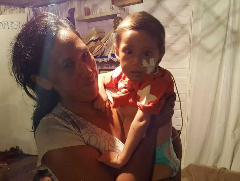 El niño nació con retraso neuromadurativo, hipotonia generalizada (carece de fuerzas y tono muscular) y padece desnutrición crónica. Lo atienden en el Hospital Juan Garrahan de la ciudad de Buenos Aires, donde fue derivado desde Pediatría de Posadas. Hace dos meses y medio, Liliana quedó en situación de calle con sus cinco hijos, y solidariamente sus vecinos Rubén y Liliana López -que también tienen cinco hijos- le brindaron alojamiento en su casa.