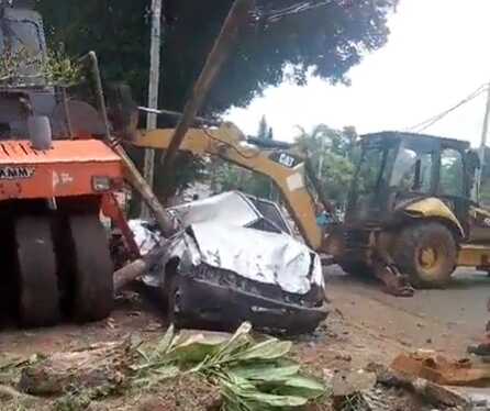 Ocurrió a las 14:20 aproximadamente del jueves, un hombre sufrió heridas cuando la maquina vial que conducía, tipo rodillo, impactó contra un portón de una propiedad ubicada sobre la venida Leandro N. Alem.