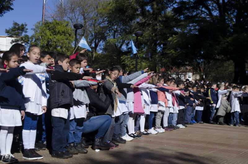 “¿Prometen defenderla, respetarla y amarla, con fraterna tolerancia y respeto, estudiando con firme voluntad, comprometiéndose a ser ciudadanos libres y justos, aceptando solidariamente en sus diferencias a todos los que pueblan nuestro suelo y transmitiendo, en todos y cada uno de nuestros actos, sus valores permanentes e irrenunciables?”, preguntó la supervisora Alicia Kotch. Y al unísono se escuchó la respuesta de los alumnos en consonancia: «Sí, prometo».
