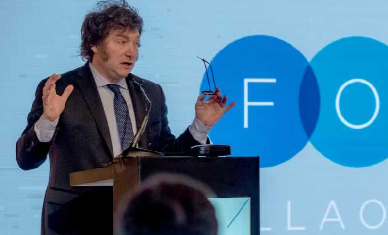 En una parte de su alocución, Milei se puso en rol de empresario y marcó respecto de qué le recomendaría a un cliente: “Me pongo el traje de economista: comprá dólares. Eso después figura como fuga. Y la verdad es que si lo compran en negro, mejor, porque así no tiene que pagar un montón de impuestos estúpidos que hay, todo para financiar a los que levantan la manito y al que lo hace de queruza, para financiar a esos inútiles”.