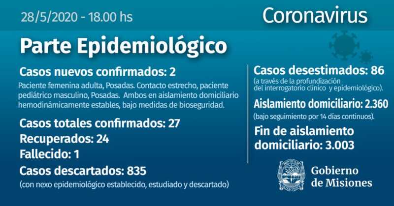 Con esta confirmación ya son 27 los infectados confirmados, los dos nuevos contagiados están en aislamiento domiciliario, bajo medidas de bioseguridad. Salud Pública se negó a dar detalles sobre el cómo y dónde se infectaron.