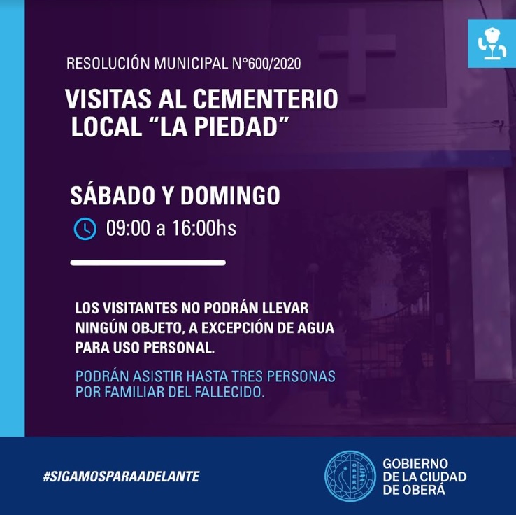 Se ruega a toda la población que decida realizar las visitas a los familiares, tener en cuenta las medidas de seguridad sanitaria, el distanciamiento social, la higiene constante de manos con alcohol en gel o reducido al 70%, evitar el saludo con otras personas.