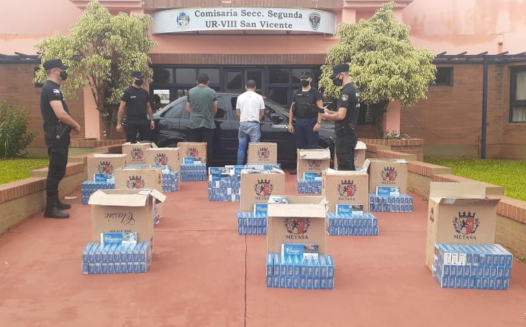 Policías incautaron más de 700 gruesas de cigarrillos tras una intensa persecución en San Vicente