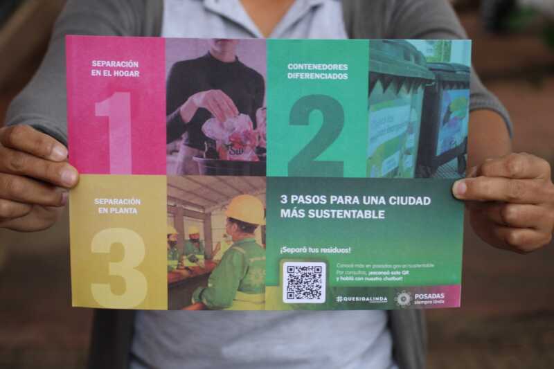 Este lunes, comenzó la campaña de sensibilización con los vecinos y comerciantes del microcentro posadeño. La novedad de esta iniciativa es la incorporación de un código QR, en donde al escanear redirige a un chatbot de Whatsapp y responde preguntas tales como cuáles son los residuos que se pueden reciclar, información, la ubicación de los ecopuntos, tips para el reciclado, entre otros. En el caso de que la inquietud no se encuentre en la base de datos, este software derivará a un operador quién brindará la respuesta solicitada.