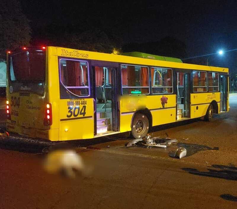 Según las primeras averiguaciones, ayer cerca de las 22:30 horas un ómnibus que transitaba por la avenida Quaranta cuando intentó trasponer la arteria ingresando a la avenida 115 por causas que se investigan, fue impactado por una Motomel 125 cc.
