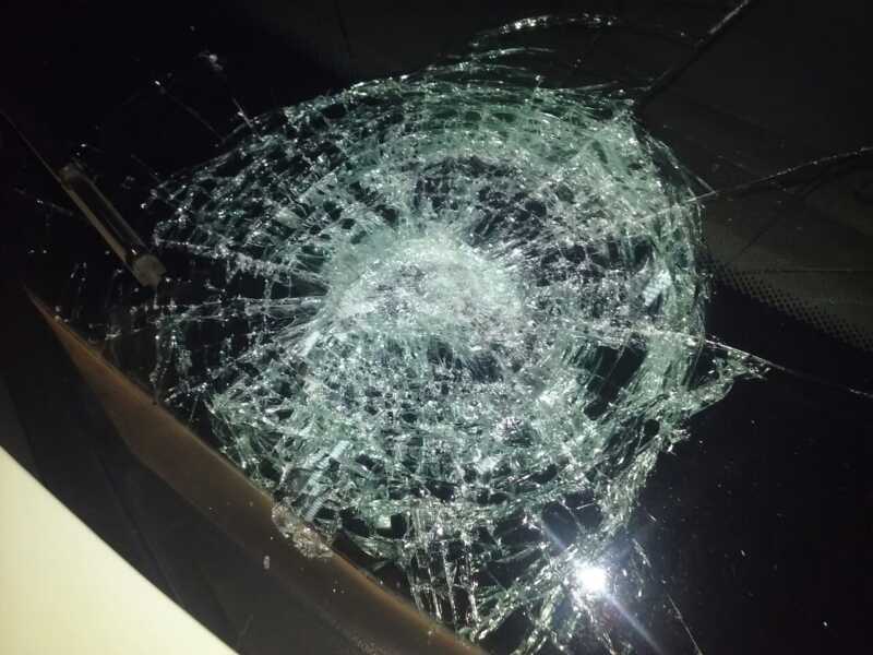 Integrantes del grupo de descontrolados jóvenes lanzaron piedras, botellas y palos que impactaron contra los patrulleros, ocasionando daños diversos.