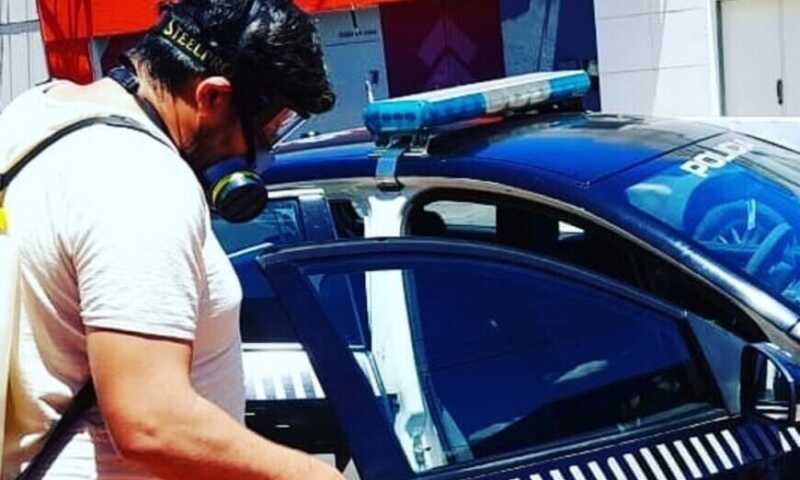 Esta mañana se sanitizó la base del Comando Radioeléctrico ubicada sobre avenida Uruguay y calle Félix Bogado como así también los móviles que son utilizados por los efectivos.