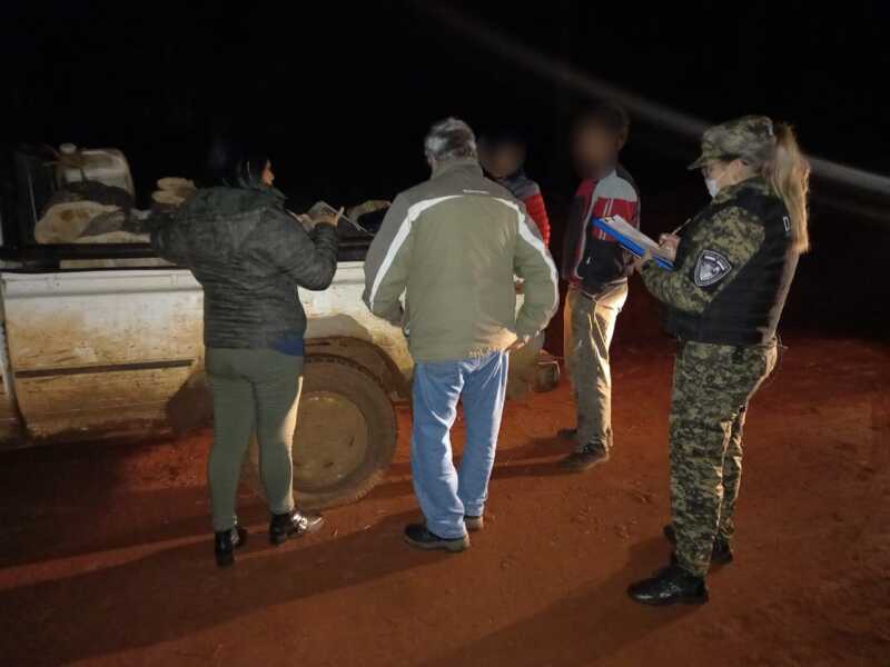 Luego de identificar al conductor, quien era acompañado por otro joven de 19 años, se dio Intervención al Personal del Ministerio de Ecología y Recursos Naturales Renovables de la Provincia, quienes constataron que los transportistas no poseían permiso de aprovechamiento de los recursos sustraídos.