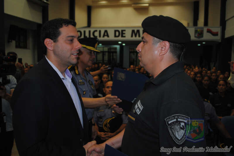El suboficial principal Carlos Alberto Ocampo y el Cabo Víctor Adam Butvilofski, fueron reconocidos por el Ministro de Gobierno Marcelo Pérez y el Jefe de Policía, Manuel Mártires Céspedes, acompañando por el Subjefe, José Mazur.