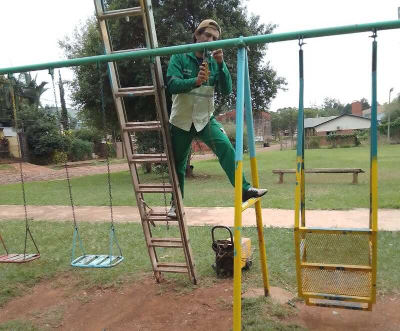 Entre las tareas realizadas se destaca la reparación de los juegos infantiles, que habían sufrido el desgaste natural del tiempo. Estos juegos han sido restaurados y luego pintados, brindando un espacio seguro y atractivo para los usuarios.