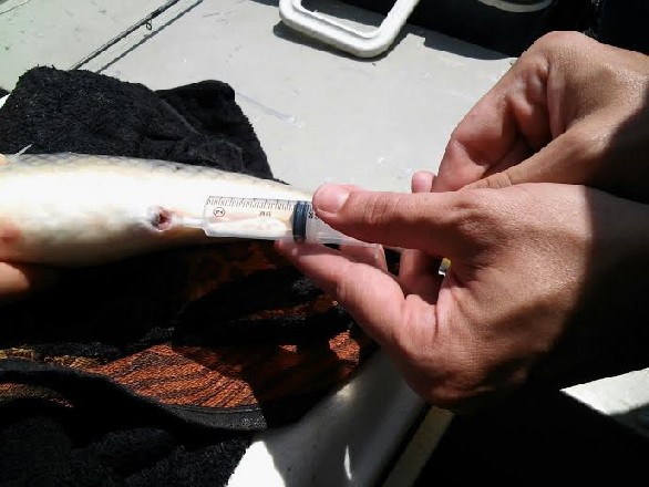 Estudiantes graduados de la Universidad Federal de Porto Alegre RS Brasil, realizaron una colecta de semen en peces migratorios del río Uruguay, entre las localidades de San Javier – Porto Xavier.
